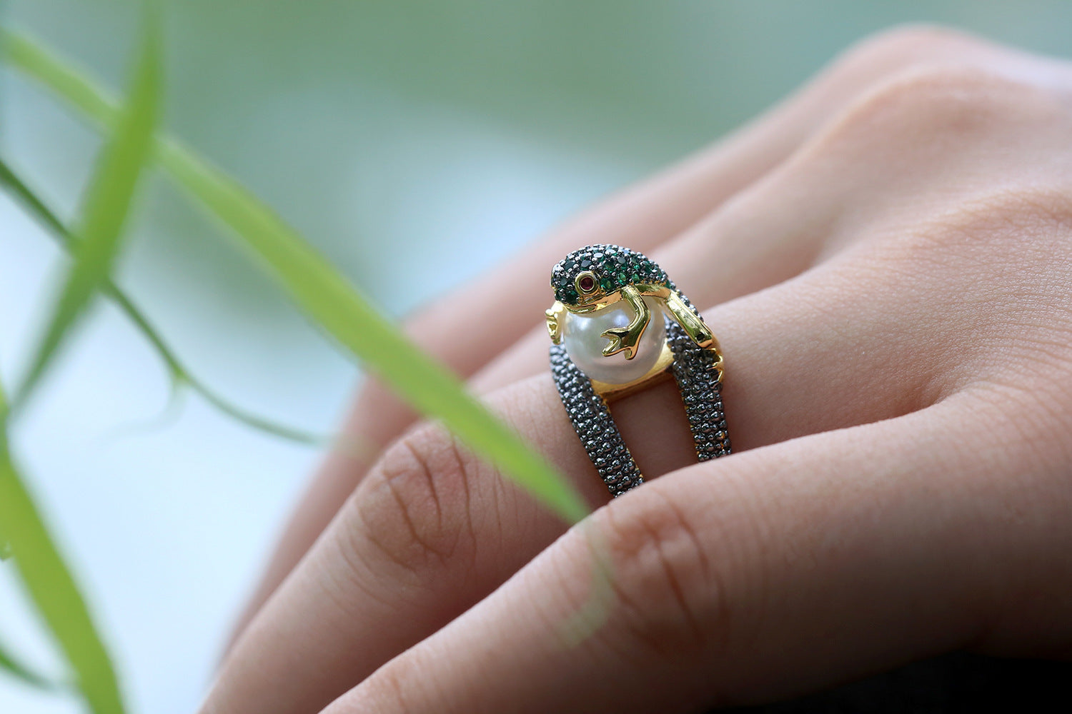 Add this golden toad zircon ring to your collection and elevate your style with meaning.