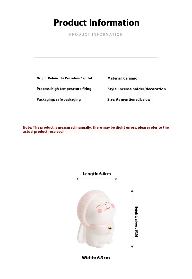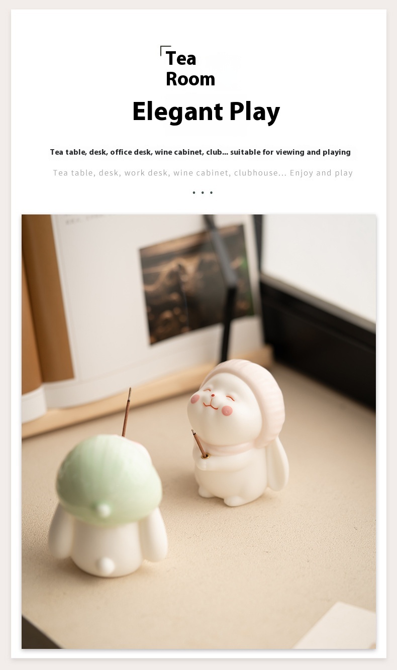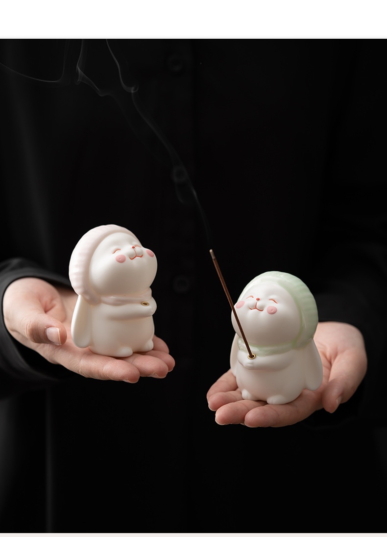 Product Name: Ceramic Incense Base – Bunny Desktop Ornament Material: Ceramic Style: Modern Simplicity Craft: Half-Handmade, Semi-Mechanical Specifications / Variants: