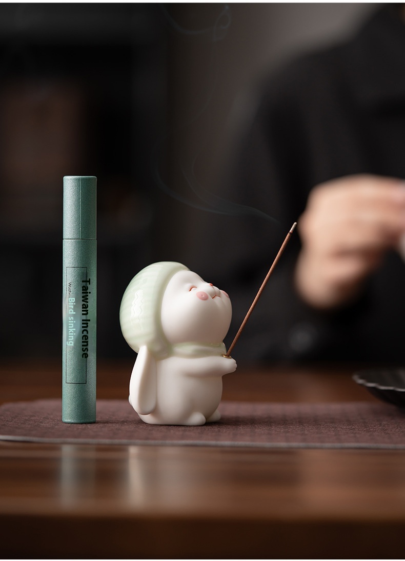 Perfect for use as an incense burner or simply as a decorative piece, this bunny ornament enhances desks, shelves, meditation areas, tea tables, and relaxation corners. Optional bamboo mat and agarwood-style variations offer added aesthetic appeal, making it a lovely gift or décor accent for any peaceful environment.