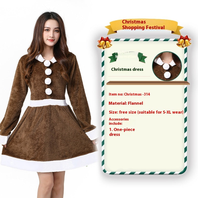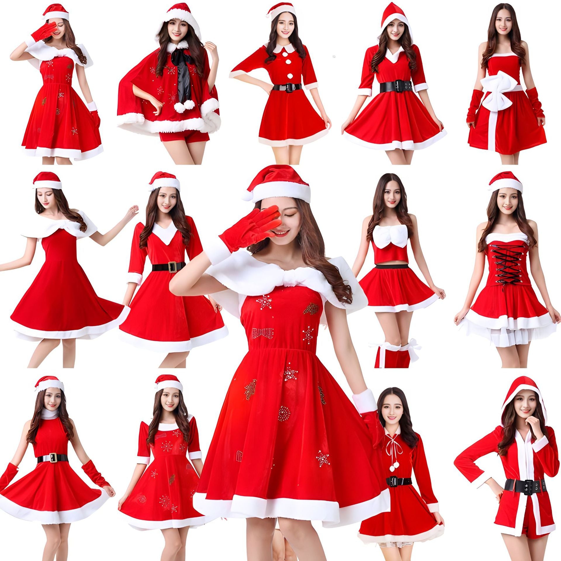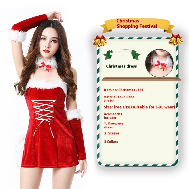 Made from high-quality polyester with a shimmering velvet finish, the costume combines comfort with a festive aesthetic. The free-size design offers flexibility and a flattering fit across various body shapes, making it easy to wear for holiday events or performance routines.