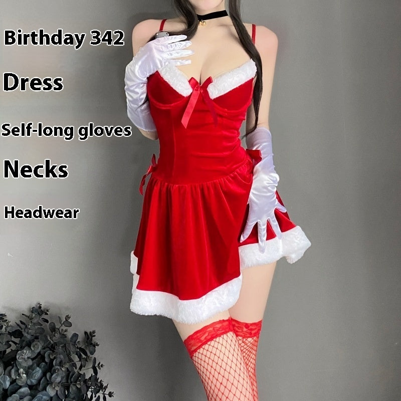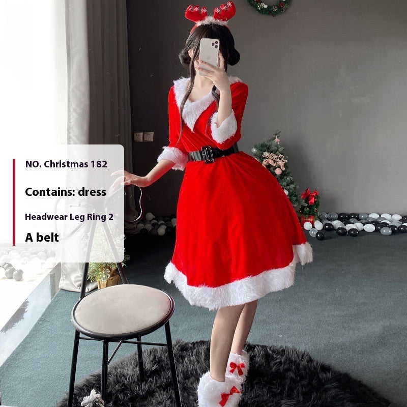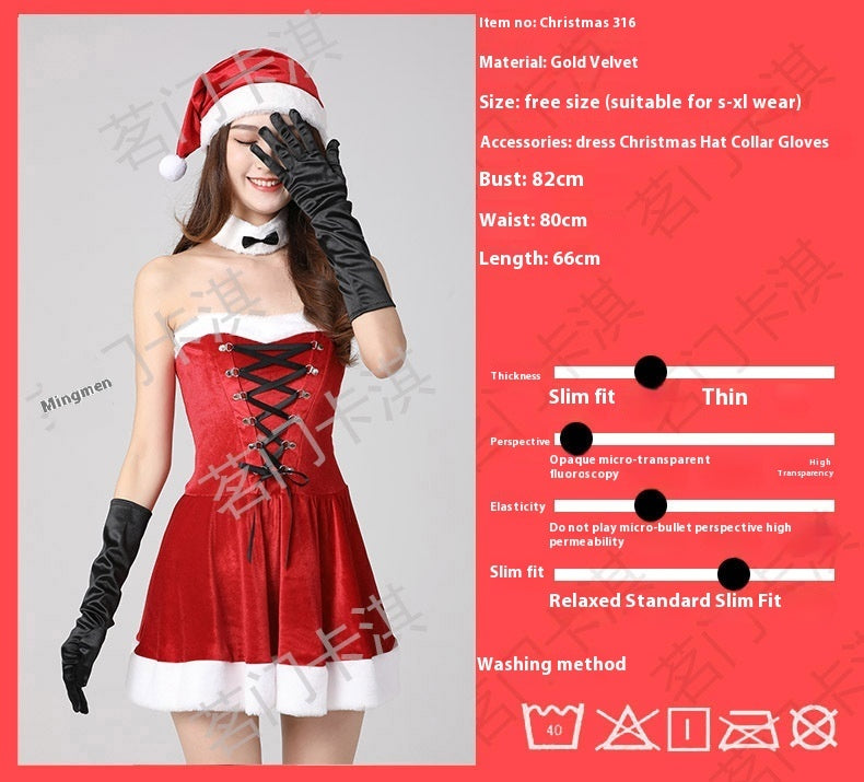Product Name: Christmas Uniform Bunny Cos Costume Fabric Name: Gold Velvet Main Material: Polyester Size: Free Size Applicable Occasions: