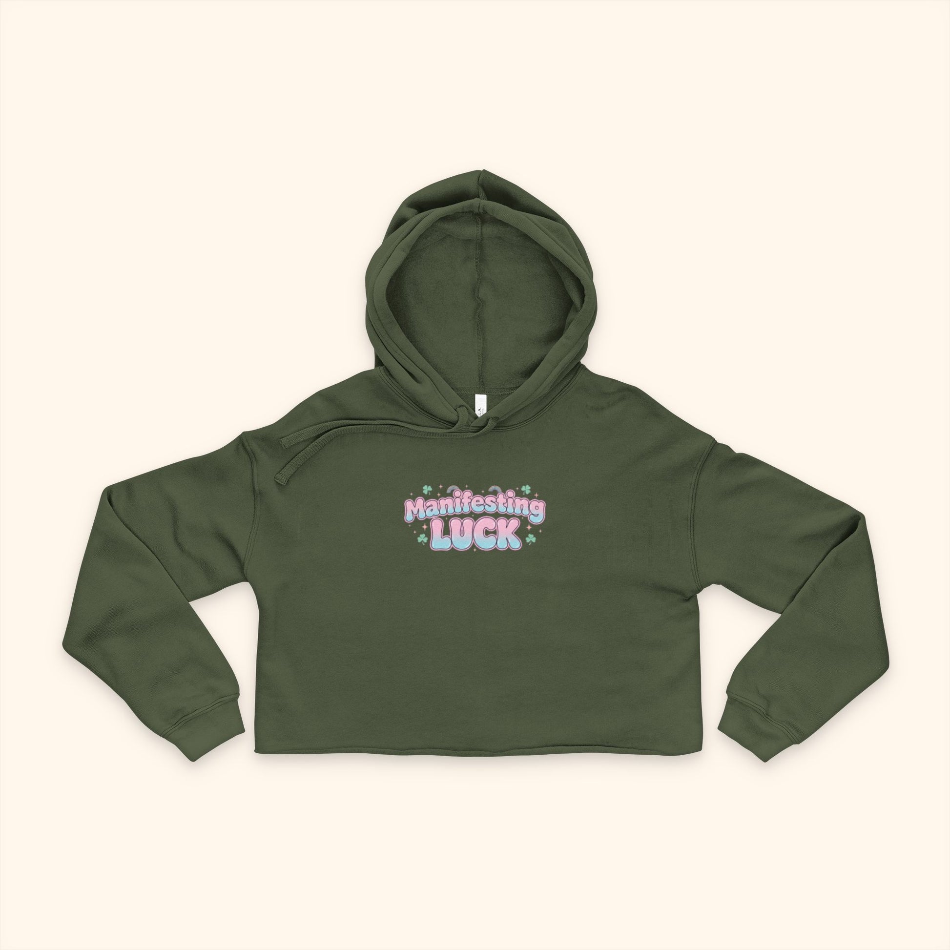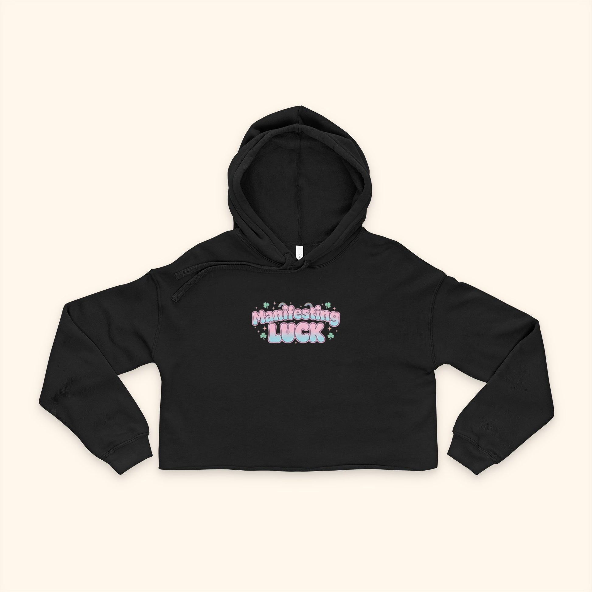 Cropped Hoodie - "Manifesting Luck" Floral Graphic