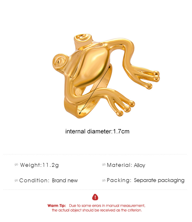 Make a statement with this Distressed Frog Alloy Index Finger Ring! This striking accessory features a stylized frog shape, crafted from durable Alloy with a protective electroplating process. The design incorporates popular elements like animals, metal, [and] geometry for a unique, bold look perfect for the index finger or any other.