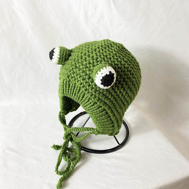 Product Name: Cute Frog Big-Eye Ear Protection Knitted Hat