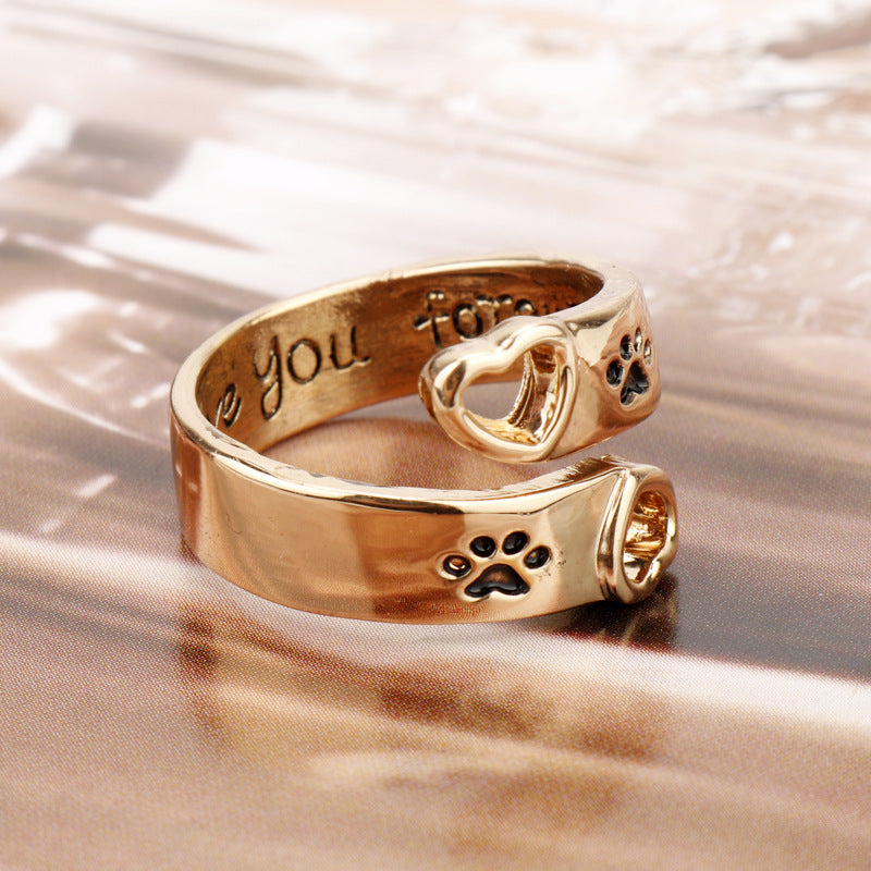 Product Type: Fashion Ring / Pet-Themed Jewelry Product Name: Hollow Love Dog Claw Ring Material: Alloy Production Process: Electroplating Color: Gold Dimensions: Adjustable Opening Weight: 5.5 g Size: Opening Adjustable (One Size Fits Most)