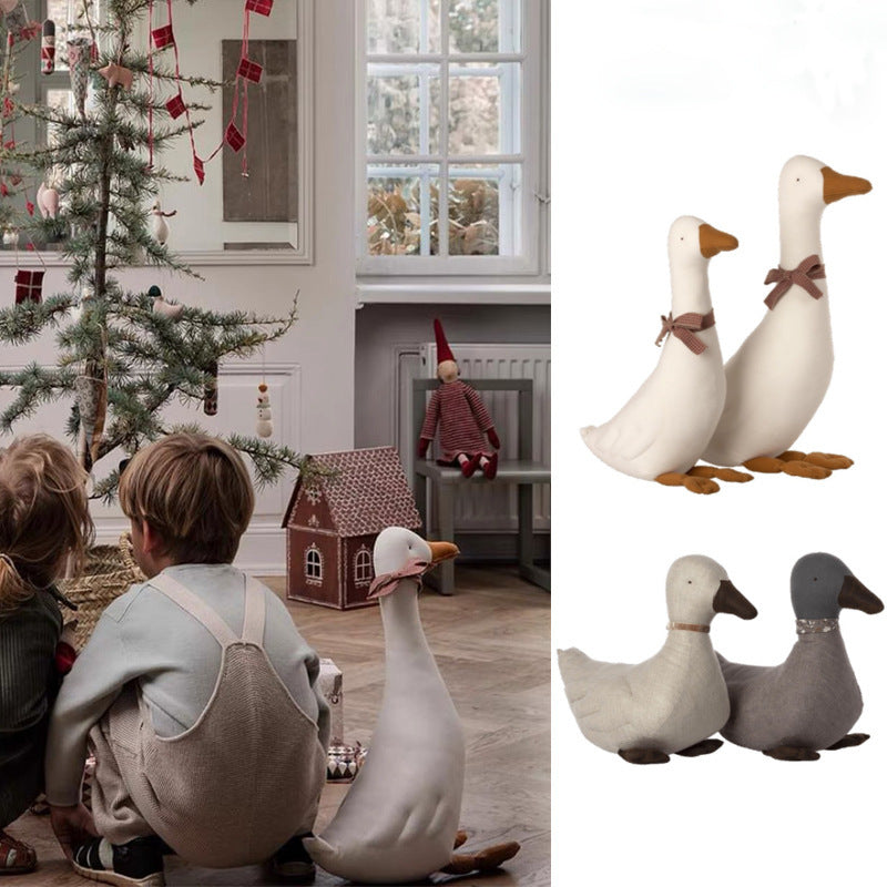 Made from durable canvas material with a soft touch, this fashionable duck-shaped doll is perfect for gripping, cuddling, or displaying in modern living spaces.
