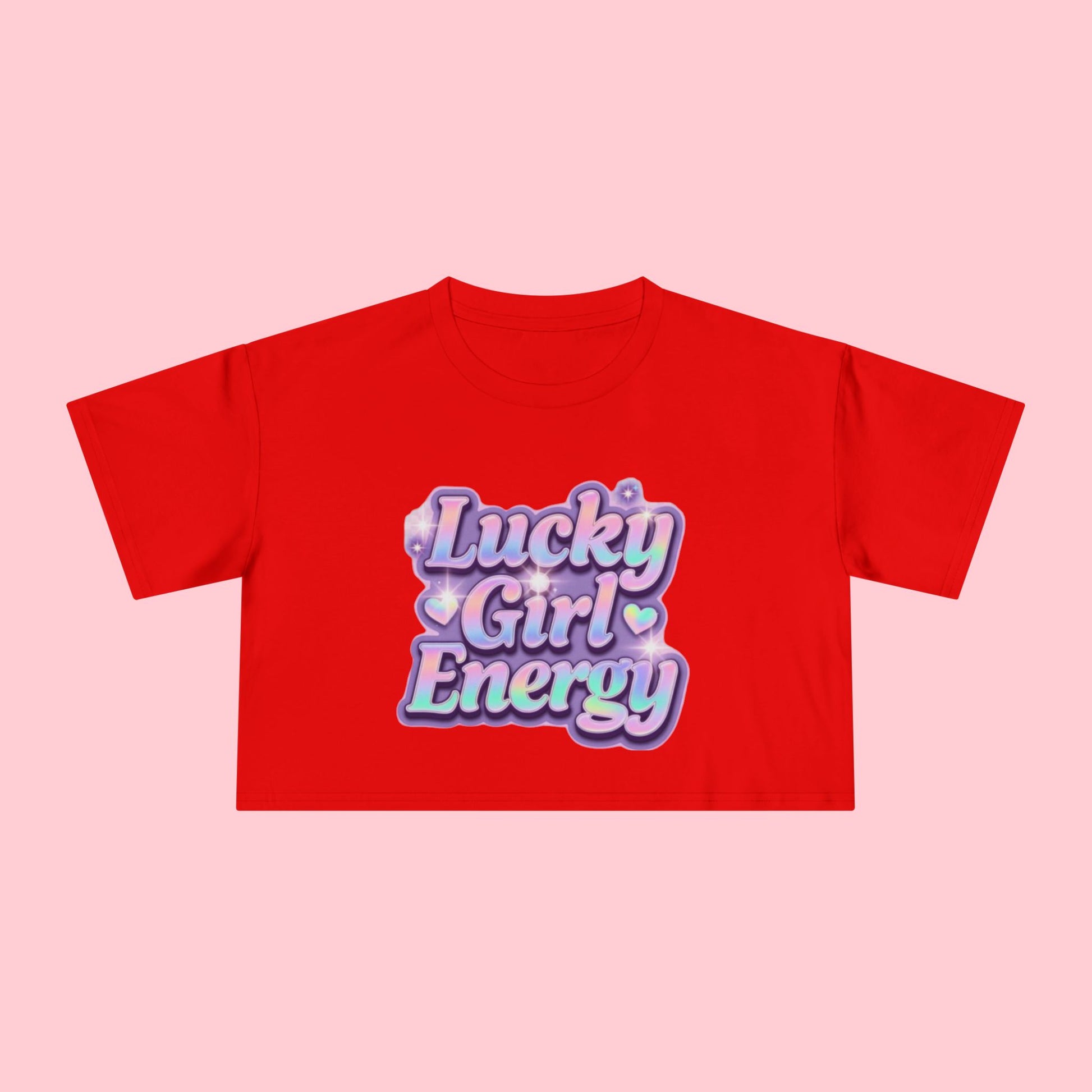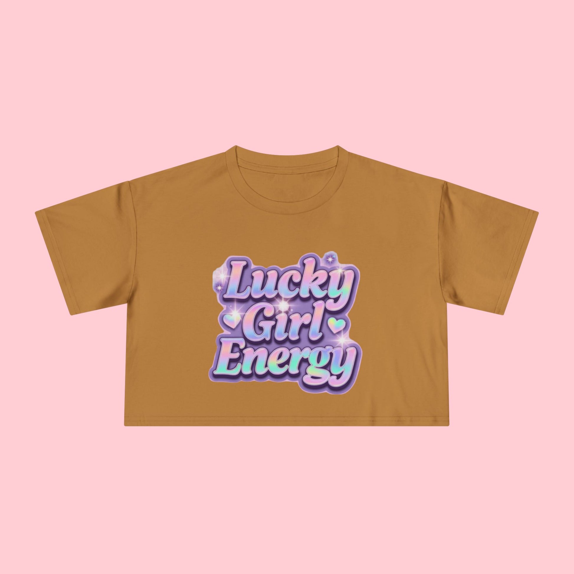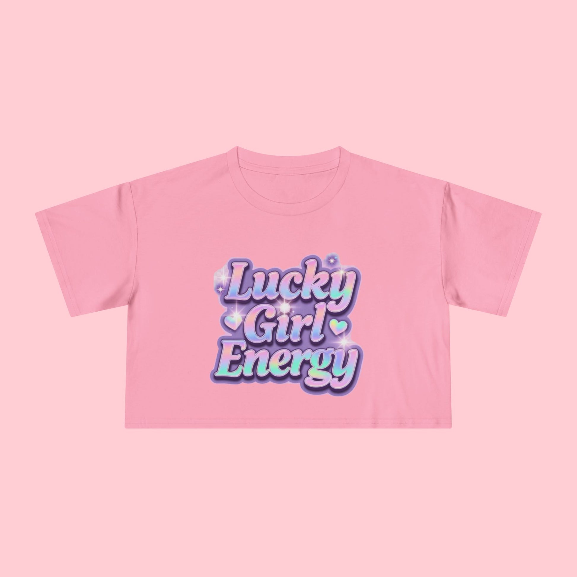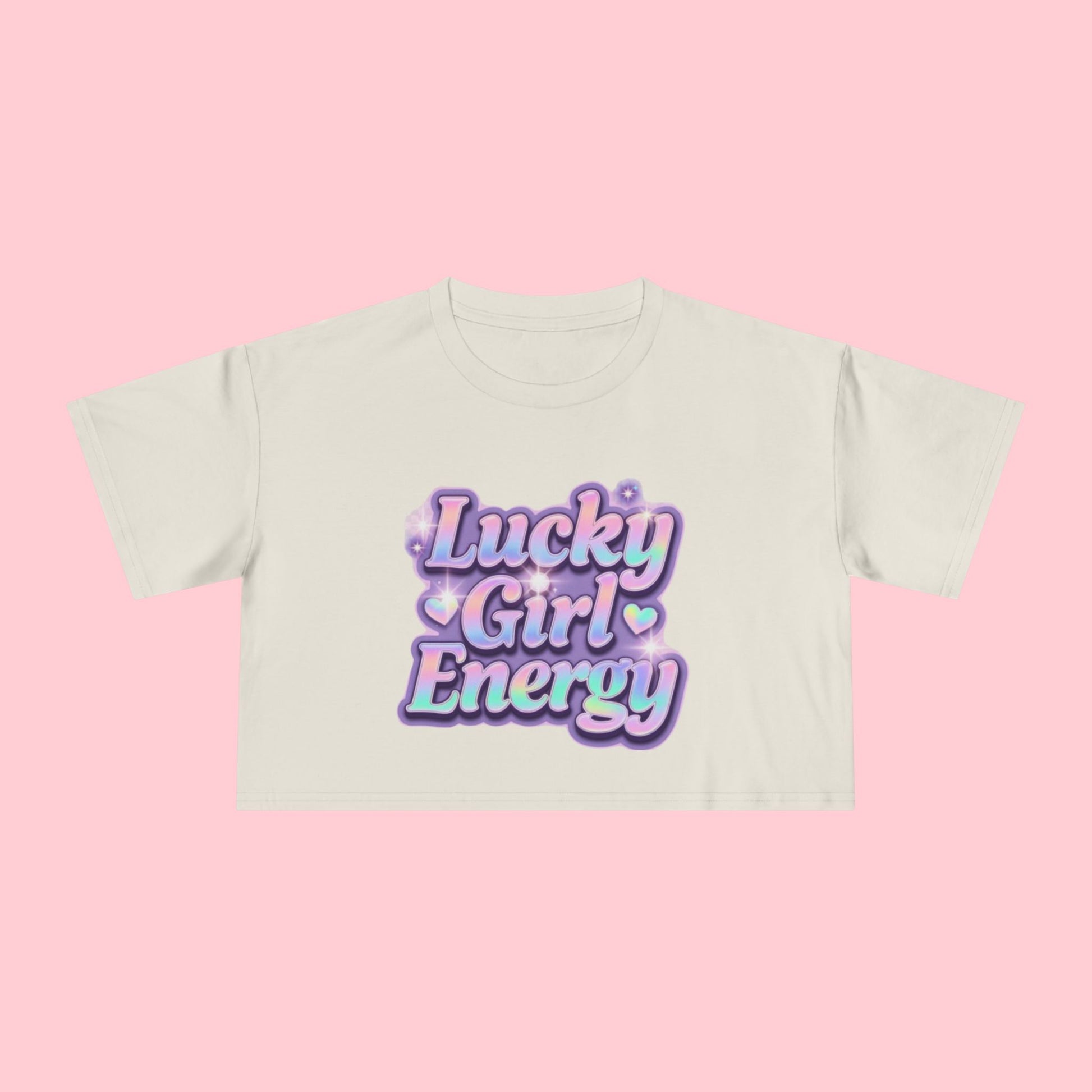 This cropped tee channels bright, playful energy with a bubbly, pastel graphic that reads “Lucky Girl Energy.” The relaxed, dropped-shoulder silhouette skims the waist for an effortless, lived-in look. Midweight cotton keeps the tee breathable and structured while double-needle stitching and shoulder twill tape ensure it holds its shape through repeated wear. Wear it with high-rise jeans, layered over a slip dress, or under an oversized jacket. It brings a confident, nostalgic pop to everyday outfits and little celebrations alike. Soft to the touch with a sewn-in label, it’s built for adults who like bold, cheerful style that feels casual and intentional.