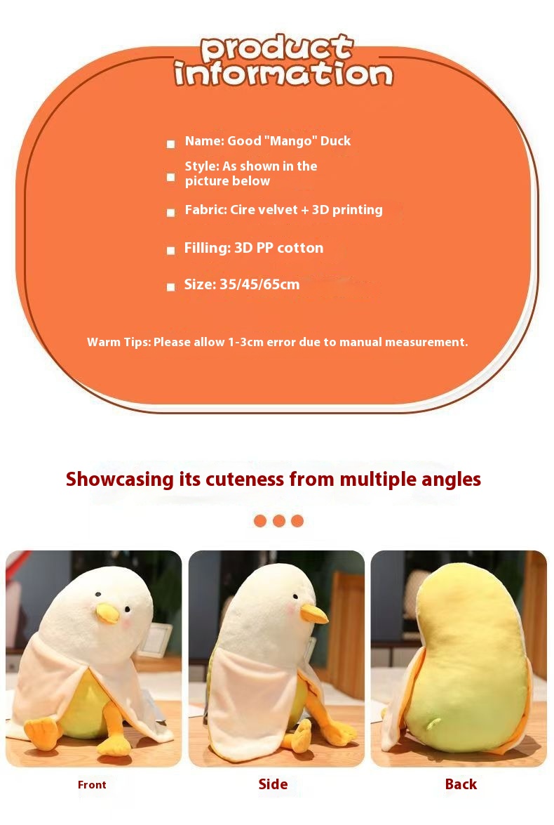 The Mango Plush Chicken Toy is an adorable and imaginative plush designed to look like a cute chick emerging from a mango peel.