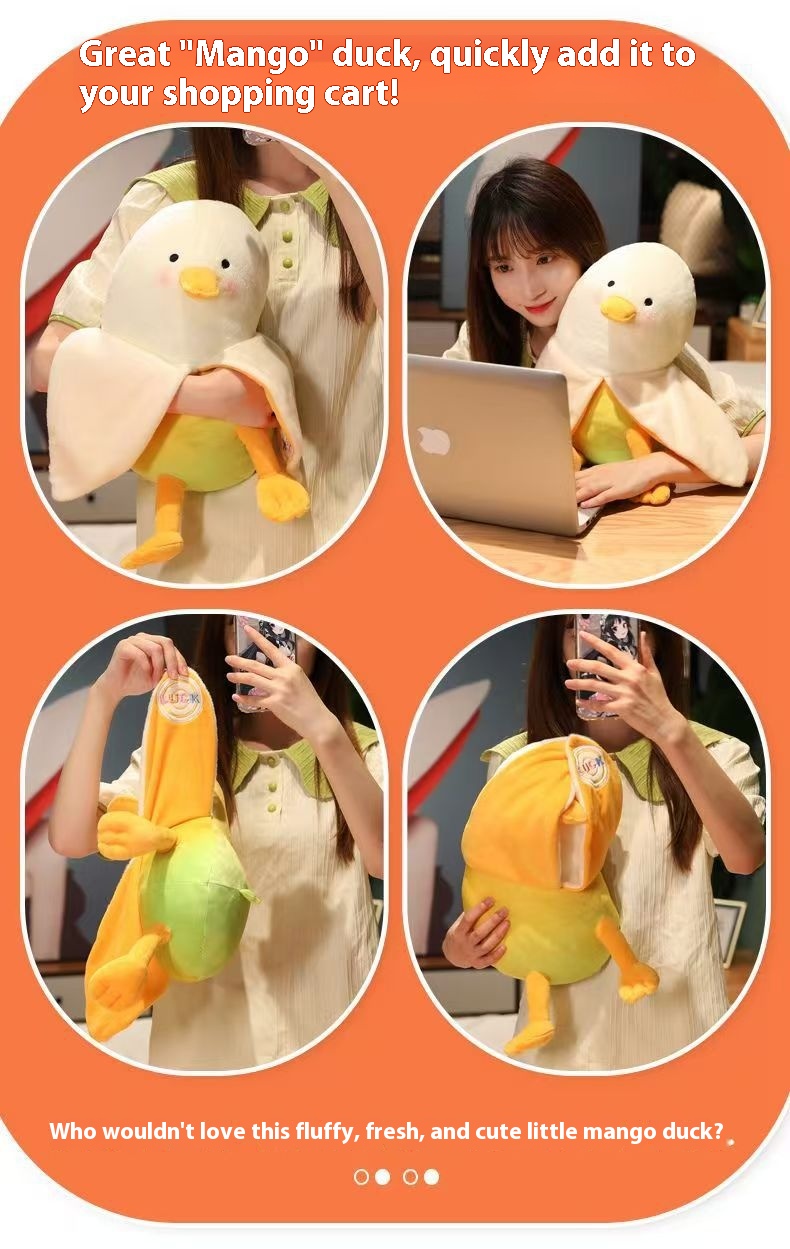 Bring home this adorable mango peeling chick plush and add a touch of fun and softness to your collection!