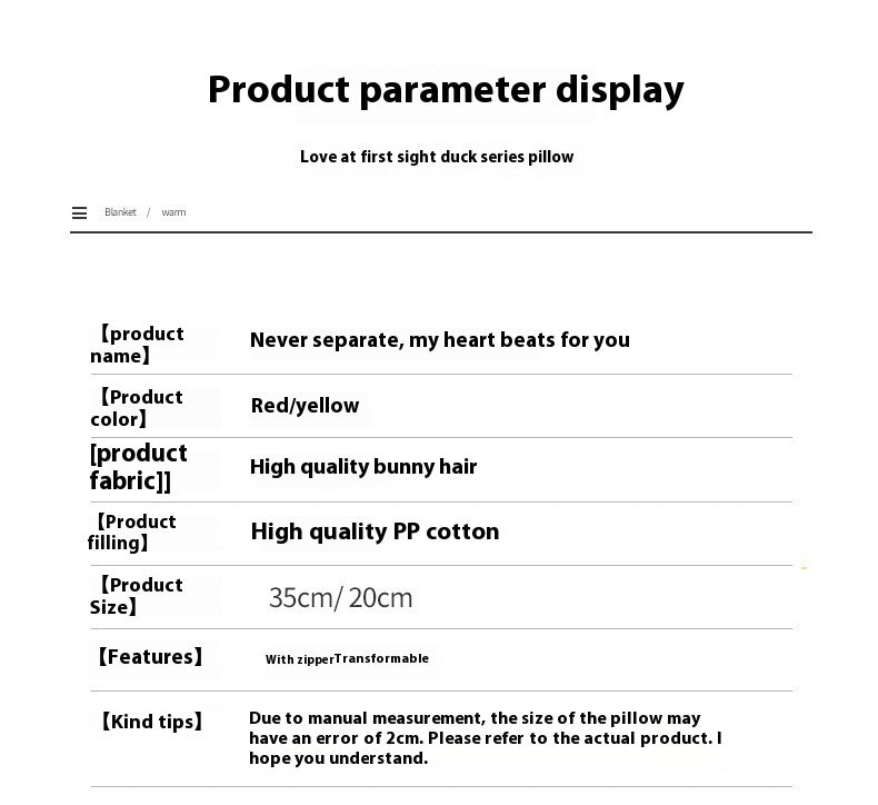 The Cute Creative Points “Pear Turned Into Love” Duck Doll Pillow is a charming and imaginative plush pillow designed to bring joy, humor, and comfort to any space.