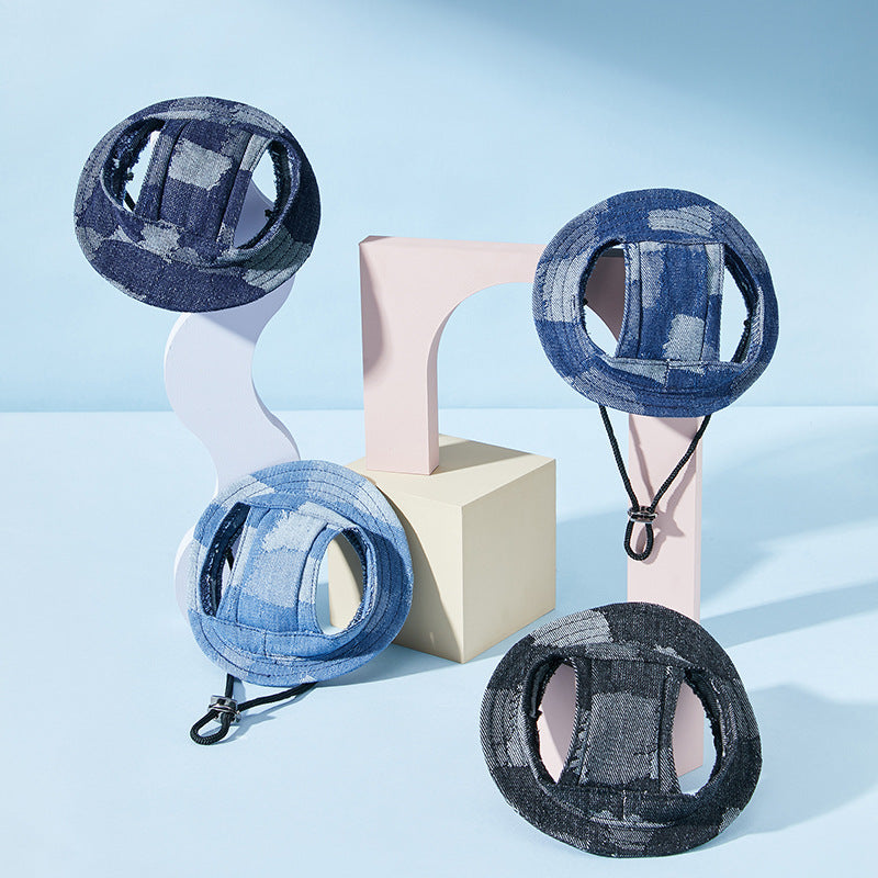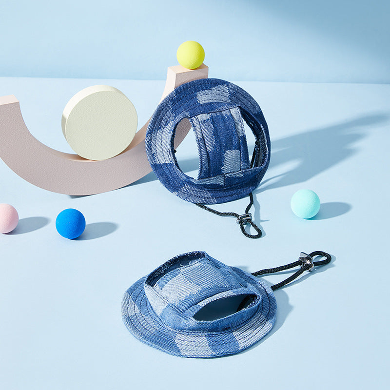 Pattern: Geometric Colors: Black, Dark Blue, Smalt, Light Blue Material: Cotton Processing Method: Sewing Sizes: S, M, L Category: Pet Accessories / Sun Hat Use: Outdoor walks, sun protection, beach outings, photoshoots Suitable For: Dogs of various breeds and sizes