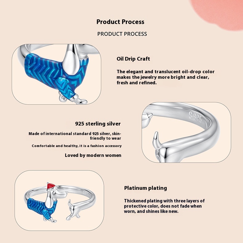 The S925 Sterling Silver Christmas Sausage Dog Open Ring is a charming holiday-themed accessory designed for women who love pets and festive jewelry. Crafted from high-quality sterling silver and finished with a glossy dripping-oil process, this ring features an adorable sausage dog in a Christmas-inspired design. Its open-mouth adjustable style ensures a comfortable fit, making it perfect for daily wear during the holiday season or as a thoughtful gift for dachshund lovers.