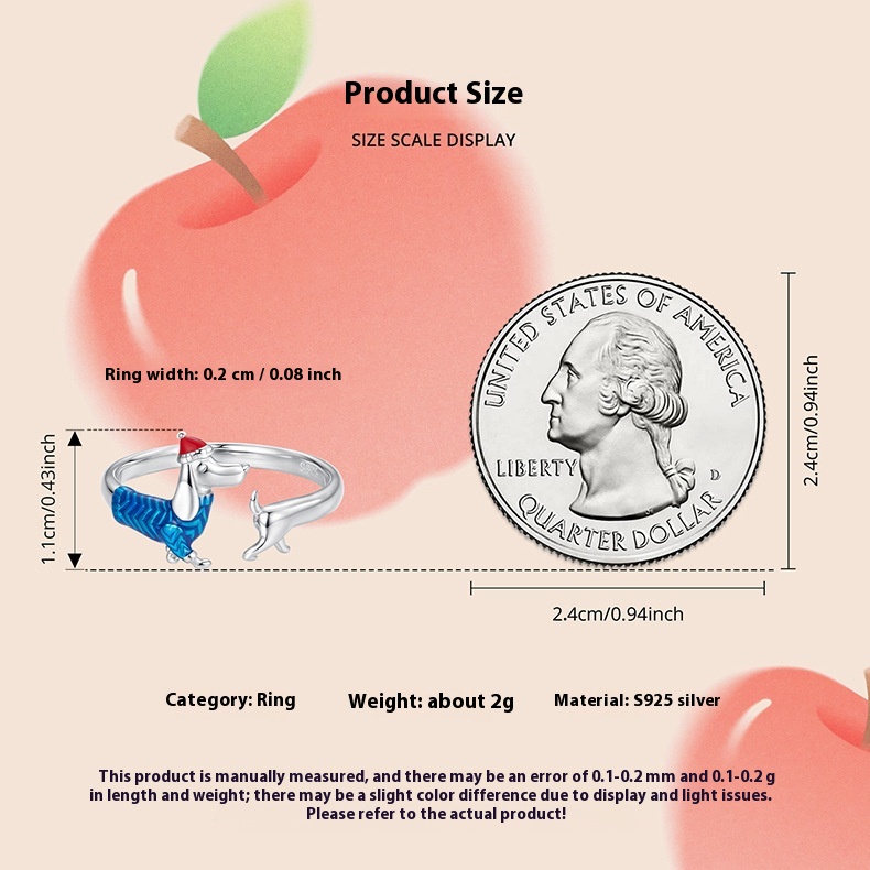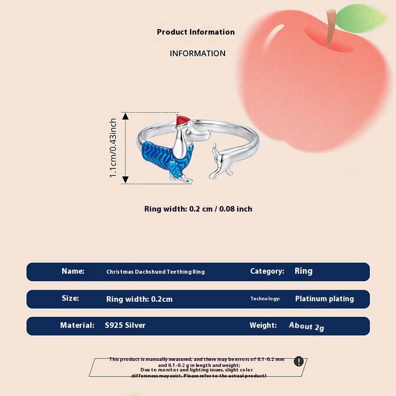 Package Includes: 1 × S925 Sterling Silver Christmas Sausage Dog Ring