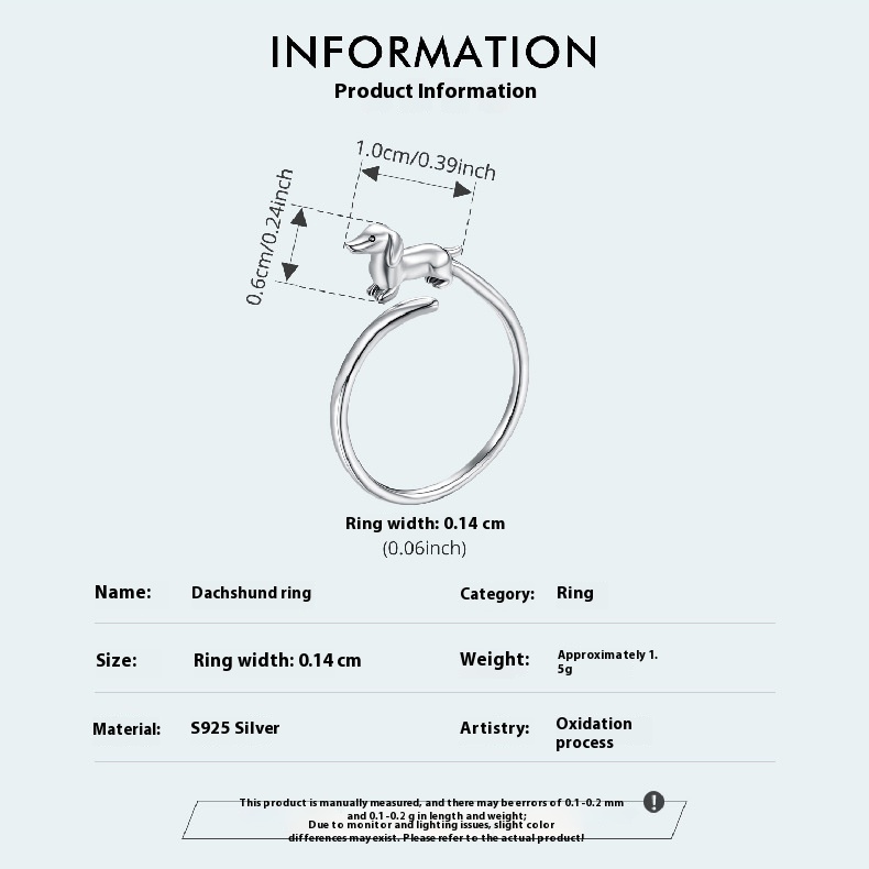 Package Includes: 1 × S925 Sterling Silver Sausage Dog Ring