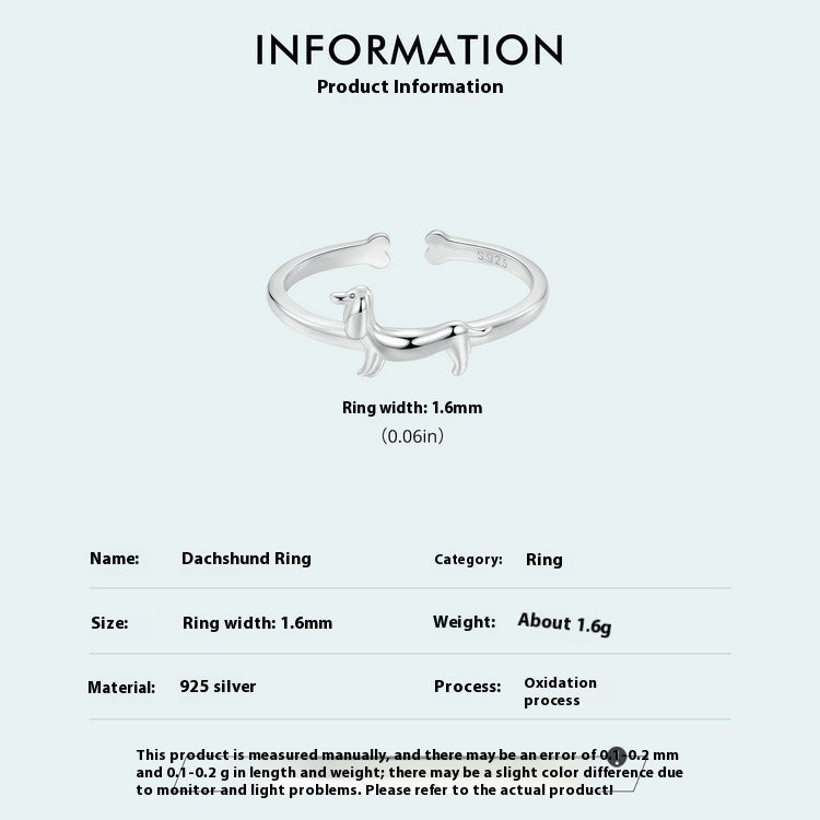 Package Includes: 1 × S925 Sterling Silver Sausage Dog Open Ring