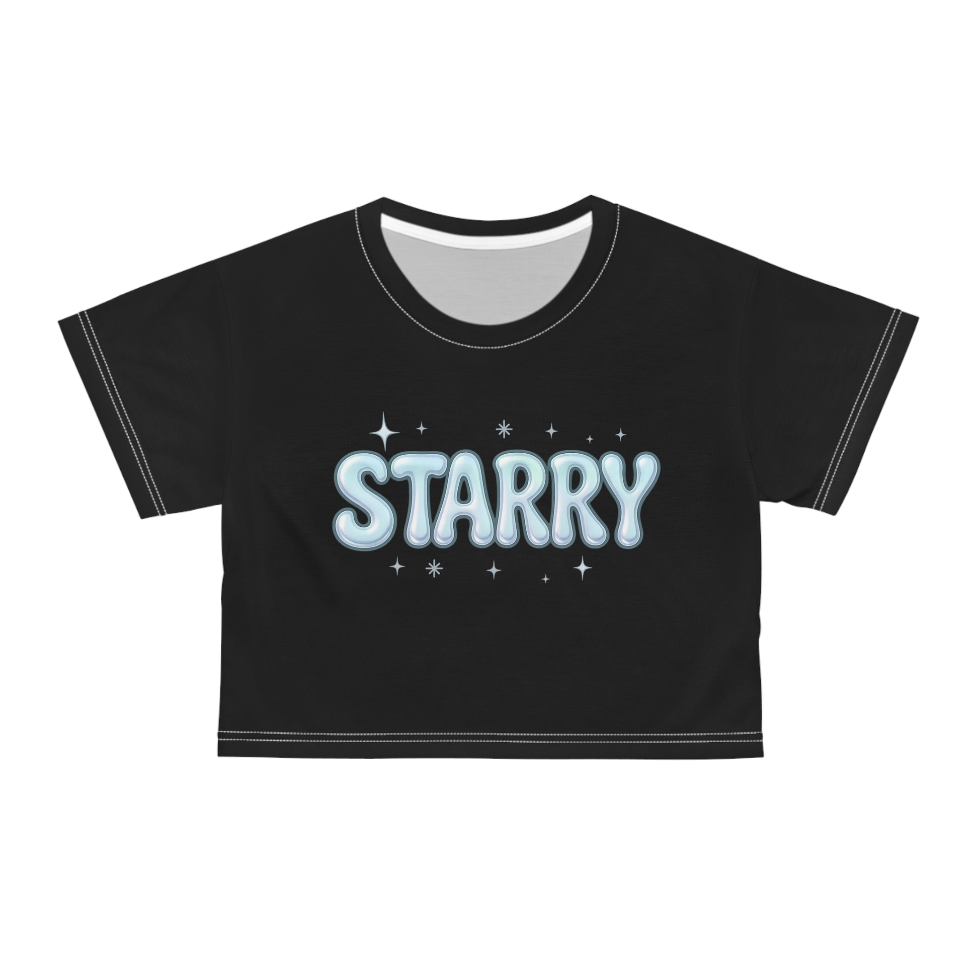 A lightweight crop tee that feels like stepping into a clear, starry night. The all-over starry print wraps the piece in quiet constellations, giving a subtle, celestial edge to casual outfits. Soft and breathable, the fabric moves with you great for evening walks, rooftop hangs, or layering under an open jacket. The ribbed neckline keeps the silhouette crisp while the vibrant, edge-to-edge print holds its detail wash after wash. Wear it when you want a touch of night-sky calm in your everyday rhythm.