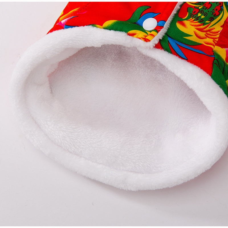 The Winter Warm Dog Vest with D-Ring is a beautifully designed pet jacket inspired by traditional Chinese folk aesthetics. Featuring vibrant red fabric adorned with large, colorful peony floral patterns, this coat brings cultural charm and festive elegance to your pet’s wardrobe. Lined with soft plush faux fur, it offers superior warmth and comfort, making it ideal for cold-weather walks and celebrations. A built-in metal D-ring allows easy leash attachment, blending fashion with everyday functionality. Perfect for small to medium-sized dogs, this jacket is a unique statement piece that keeps your pet cozy while standing out in style.