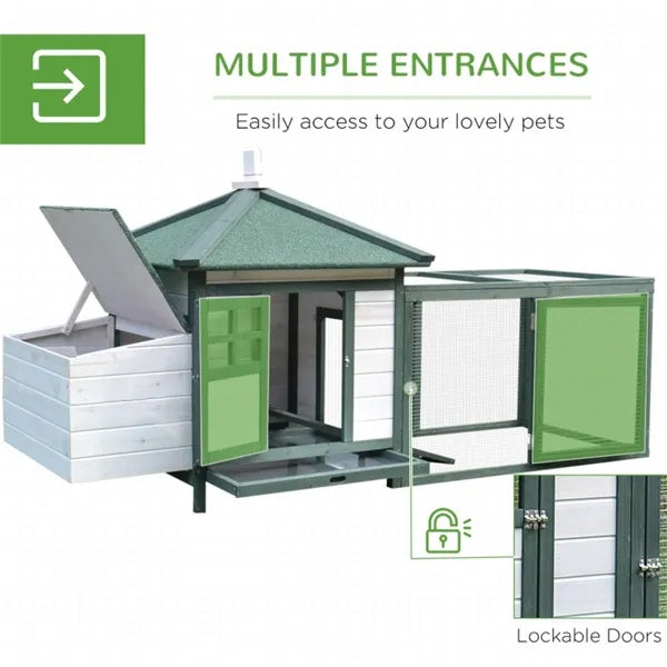 This Wooden Chicken Coop offers a charming, cottage-like design that combines durability, comfort, and protection for your hens. Built from high-quality pine wood and reinforced with strong steel wire, it provides a secure and cozy home for up to two grown chickens. With waterproof paint and a sloped roof, it ensures excellent weather resistance while keeping your pets safe from outdoor elements.